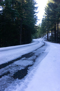 I took FS-58 and made my way up the foothills of Mt Hood. I started to hit snow as I got within a half mile from where FS-57 breaks off from the road. It was still driveable so I continued on 58 as it started to steadily climb upwards. I got to the turn off for the road that leads to Anvil when the tires started to slip pretty bad. The rest of the road was uphill so I decided to turn around there.